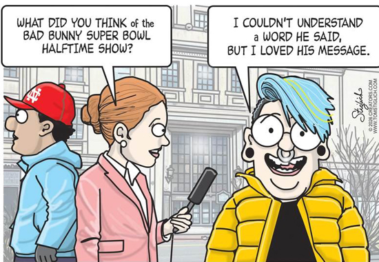 The "artist" called Bad Bunny is a cross dressing rapper who did the entire program in Spanish, but the Communists in the mainstream media still applauded his counter culture, anti-American message.